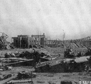Il commissario prefettizio per la temporanea amministrazione del comune di Vibo Valentia e il podestà di Jonadi, chiesero la rettifica di confine fra i comuni di Jonadi e di Vibo Valentia, in conformità di apposito progetto planimetrico, visitato dall’ingegnere capo dell’Ufficio del Genio civile di Catanzaro e decretato su proposta di Benito Mussolini il 29 Marzo 1940. Nonostante le dimensioni del campo d’aviazione fossero modeste, permisero il decollo e l’atterraggio di diversi tipi di aeroplani, dagli aerei da trasporto ai caccia e, durante la guerra, dai bombardieri Savoia-Marchetti ai trimotori Heinkel. Dopo la morte di Razza, all’aeroporto venne attribuito il suo nome. Dal primo luglio 1940 il campo assunse la qualifica di “Aeroporto armato di terza classe”. Le sue reali funzioni furono: una scuola di addestramento per radiotecnici, un’officina riparazione aerei ed una scuola di pilotaggio; era considerato un gioiello per strutture e organizzazione. Il 10 luglio 1943, lo stesso giorno dell’invasione alleata della Sicilia, un inferno di fuoco si abbatte sull’aeroporto “Luigi Razza” di Vibo Valentia. L’attacco venne operato da circa 60 bombardieri B-24, al quale seguirono i bombardamenti dell’11, 13, 15, 16 e 20 dello stesso mese. Quelle incursioni decretarono la fine della sua breve storia e quella di oltre cento giovani soldati e avieri italiani e tedeschi. Nel 1943 erano presenti oltre 600 militari tra avieri e soldati dell’esercito oltre ad alcune decine di avieri tedeschi e durante i primi due anni e mezzo di guerra, la vita del campo fu intensa: atterraggio e decollo di centinaia di aerei da trasporto, bombardieri e caccia italiani e tedeschi provenienti da basi italiane e diretti in Sicilia o in Africa settentrionale, attività di assistenza delle sue officine per il controllo, revisione e riparazione di aeroplani, fornitura di carburante, depositi di derrate alimentari, mense e servizi vari. Dopo il primo bombardamento del 10 luglio, particolarmente devastante risultò il bombardamento del 16 luglio. Il carico di morte dei bombardieri consisteva in centinaia di bombe dirompenti da 500 pounds, da varie migliaia di ordigni a frammentazione e da decine di migliaia di colpi di mitragliatrici da 20 mm. Alle ore 10.58 la pioggia di bombe ebbe così inizio. Dei 78 aerei presenti, 50 furono colpiti, le strutture del campo furono completamente distrutte (nella foto, il campo alla fine dei bombardamenti). L’aeroporto di Vibo Valentia fu assediato ed occupato da avanguardie della V divisione dell’VIII armata di Montgomery nel tardo pomeriggio dell’8 settembre 1943, lo stesso giorno in cui, con uno sbarco sulle spiagge di Vibo Marina, gli inglesi avevano intercettato le colonne tedesche dirette verso Salerno accelerandone la ritirata.