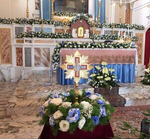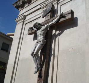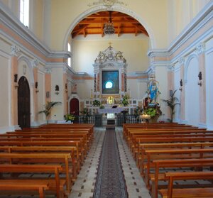 Un elemento che caratterizza la Chiesa è il Crocifisso di grandi dimensioni, posto precedentemente sulla facciata principale. E spostato all’interno dopo i lavori di restauro. Oltre a questa opera, vi sono molteplici raffigurazioni secolari, tra i quali spicca, in modo particolare, la figura di San Francesco d’Assisi.