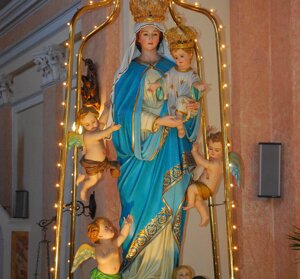 La celebrazione della festa della Madonna degli Angeli è quella sentita in modo particolare dagli abitanti jonadesi. Essa ha luogo a partire dal 23 Luglio, giorno in cui inizia la Novena in onore della Madonna degli Angeli, per poi terminare il 2 Agosto con la discesa della stessa. In questi giorni, viene utilizzata una statua di più recente costruzione, risalente infatti ai primi anni del 900. Inoltre, è presente una copia della statua, di dimensioni più ridotte, nota come “pellegrina”, in quanto gira continuamente nelle case di Jonadi. La stessa rientra nella propria Chiesa, solo nei giorni di festa dell’1 e 2 Agosto.